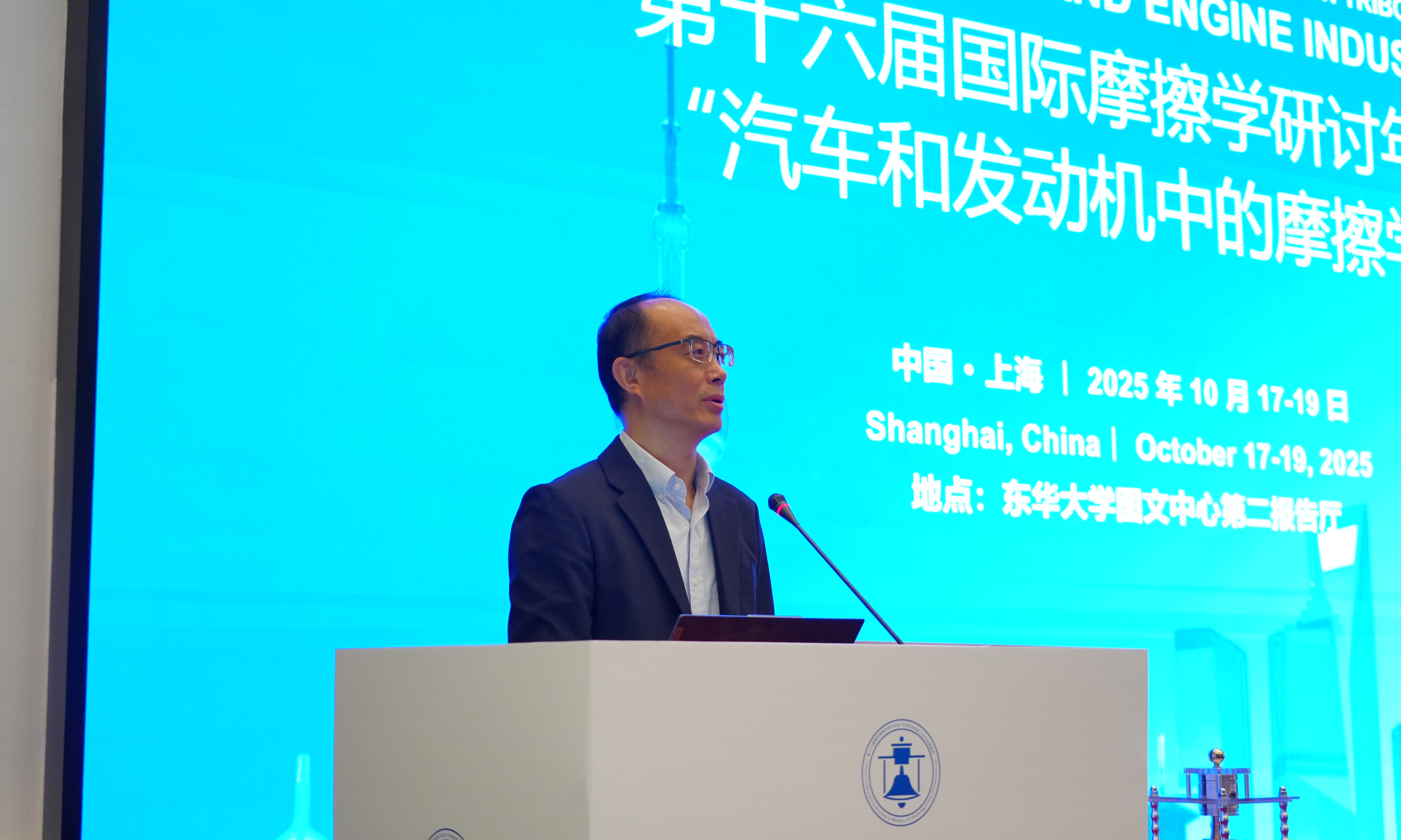 阎林平代表学校向国内外嘉宾表示欢迎和感谢。他指出,在“双碳”目标与高端装备快速发展的背景下,摩擦学已成为提升能源效率、保障装备可靠性、构筑产业竞争力的核心科技。他介绍了东华大学在材料、机械与智能制造等交叉领域的最新布局,表示学校愿携手海内外学者,共建开放协同的学术共同体与产业生态,推动摩擦学成果在汽车、航空航天等领域的应用落地。