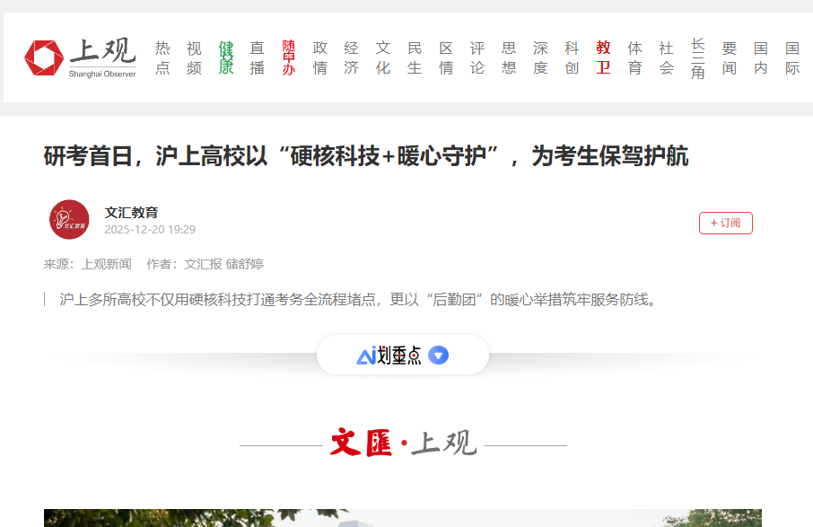 今年,沪上多所高校不仅用硬核科技打通考务全流程堵点,更以“后勤团”的暖心举措筑牢服务防线,为研考保驾护航。
