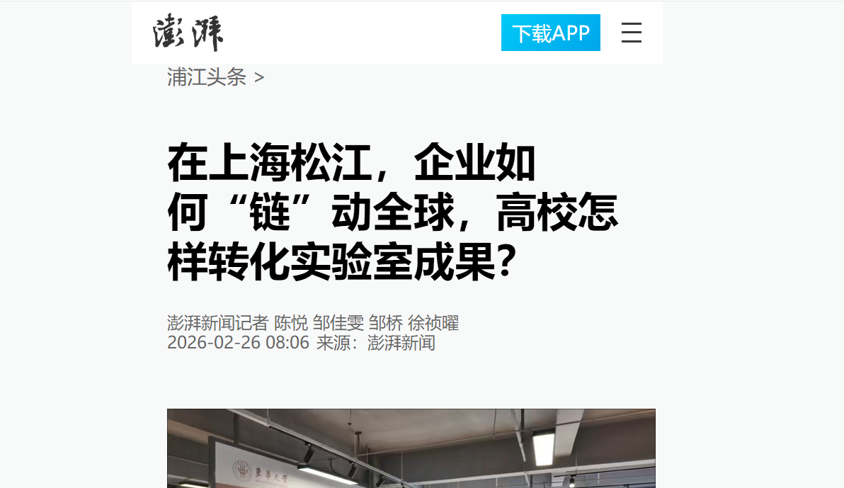 从实验室到生产线,从高校创新到产业应用,东华大学国家大学科技园概念验证成果转化中心以校地协同的创新实践,破解着高校成果转化难题,让科技创新成为区域产业发展的核心动力,这也是上海培育新质生产力、建设具有全球影响力的科创中心写下的一笔生动注脚。(作者:澎湃新闻记者 陈悦 邹佳雯 邹桥 徐祯曜 时间:2026-02-26 来源:澎湃新闻)