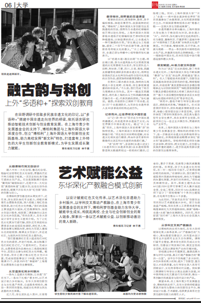青年报半版:艺术赋能公益 东华深化产教融合模式创新