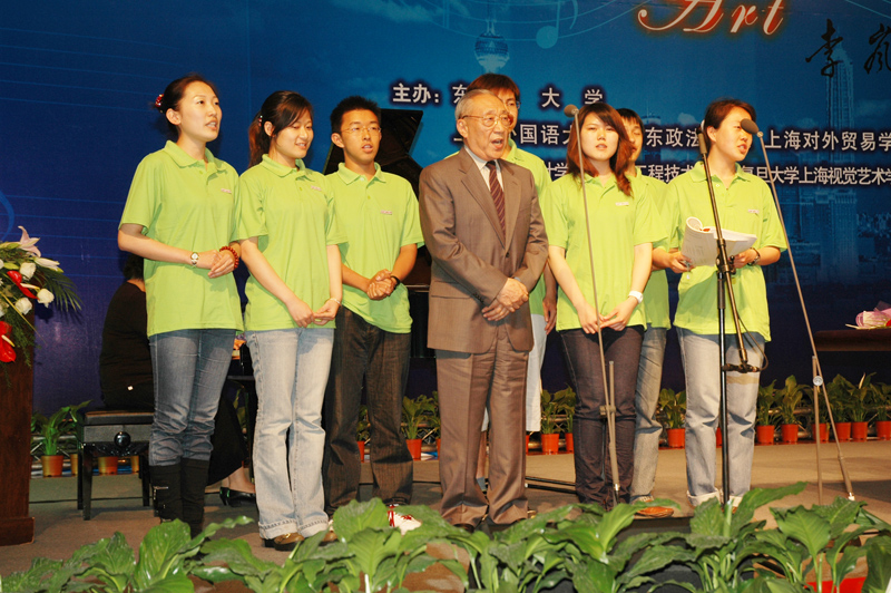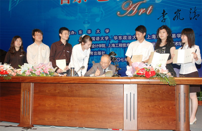 2007年5月9日,原中共中央政治局常委、国务院副总理李岚清同志应邀来到我校,与师生畅谈“音乐、艺术、人生”。(摄影:党委宣传部 夏正德) 图片说明: 1、李岚清同志作讲座。 2、朱绍中书记代表学校接受李岚清同志亲笔提字的赠书。 3、徐明稚校长陪同李岚清同志步入锦绣会堂。 4、李岚清同志为学生签名赠书。 5、李岚清同志与学生同唱《莫斯科郊外的晚上》。 6、全场合唱《歌唱祖国》。
