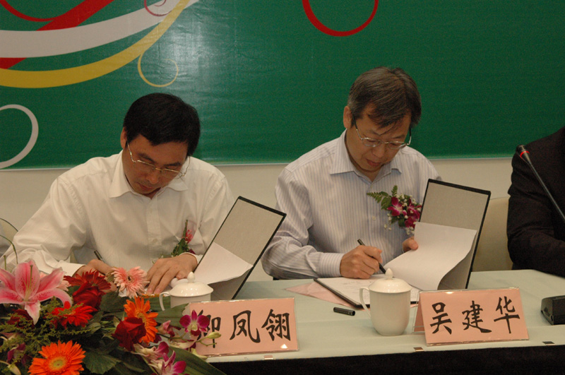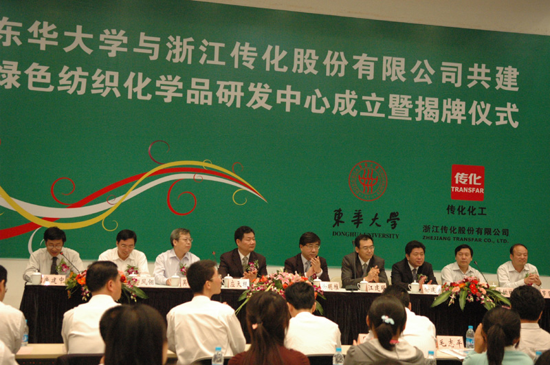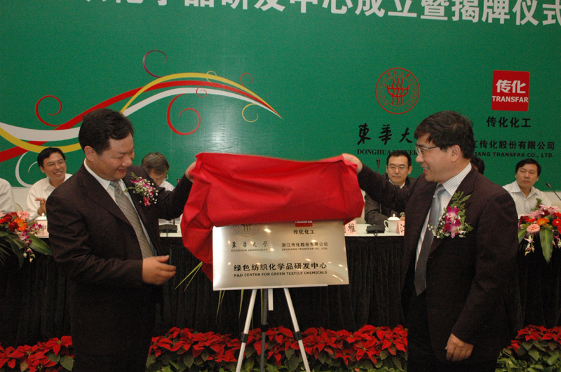 化工生物学院卿凤翎院长与浙江传化股份有限公司吴建华总经理签署双方合作协议,在一片热烈的掌声中徐明稚校长和应天根总裁共同为研发中心揭牌。应天根总裁和江建明副校长在随后的致辞中都表示联合研发中心的建立是一种双赢的合作模式,不仅可以促进校企双方的产学研合作,而且还可以加快科研成果的转化,同时也希望研发中心能够在节能减排、循环经济等领域取得新的进展和突破。