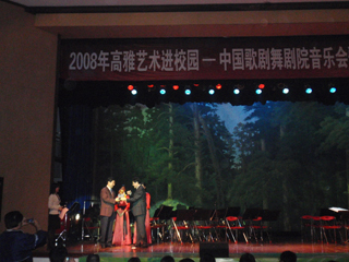 此次演出是2008年高雅艺术进校园系列活动之一,今年我校已组织了话剧《商鞅》、“走进大剧院”等多场高雅艺术活动,受到了师生们的欢迎。