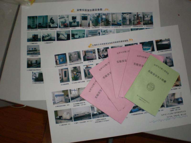 在“走进实验室”活动开展之前,院研会考虑同学们的需求,处于实际、本着为同学们服务的思想,为全体同学编制了《实验室知识小锦囊》手册一本,并配有实验室仪器设备彩图两张,并亲自发放到每位同学的手里。这本手册,从实验室安全操作规程讲起,详细介绍了如实验室安全、化学试剂使用须知、灭火器使用方法以及实验室常用仪器设备等必要的知识,方便同学们在做实验、写论文的时候随时翻阅,查找自己需要的资料,是同学们学习和科研中既实用又有效的好帮手。