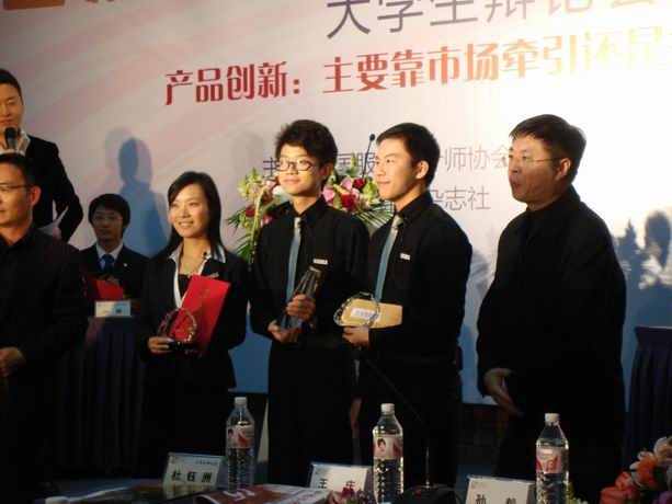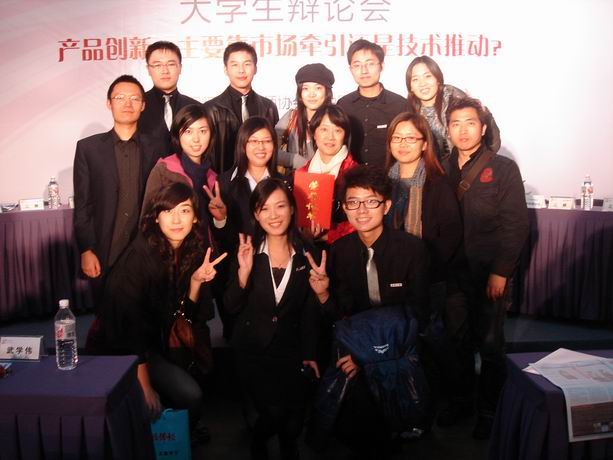 历时两天的辩论会由中国服饰报、中国服装设计师协会主办,服装设计师杂志社承办,在北京D-PARK会所举行,共有中国人民大学、北京服装学院、东华大学、浙江理工大学四所院校的代表队就“产品创新:主要靠市场牵引还是技术推动”这一辩题展开了激烈的交锋。我校代表队先是以压倒性的优势在预赛中战胜了北京服装学院代表队,并由陈宇超同学同时获得预赛最佳辩手称号。由于决赛中要以与预赛相反的立场,接着在不到一天的准备时间中,队员们克服了时间紧、难度大的困难,积极准备,为校争得了荣誉。