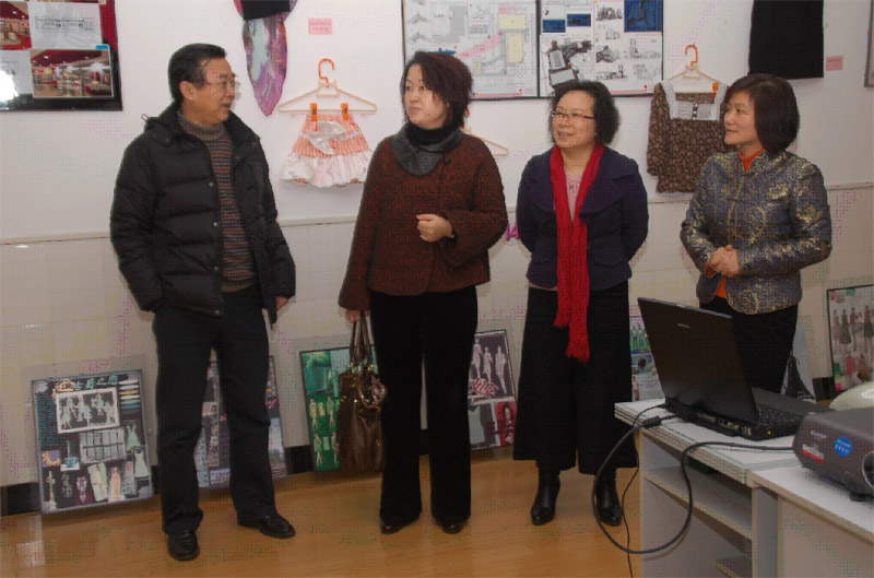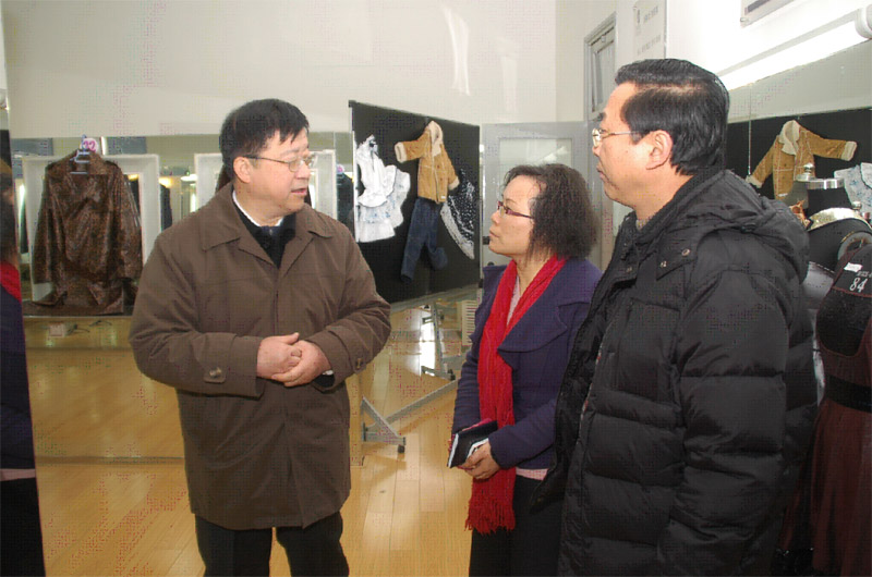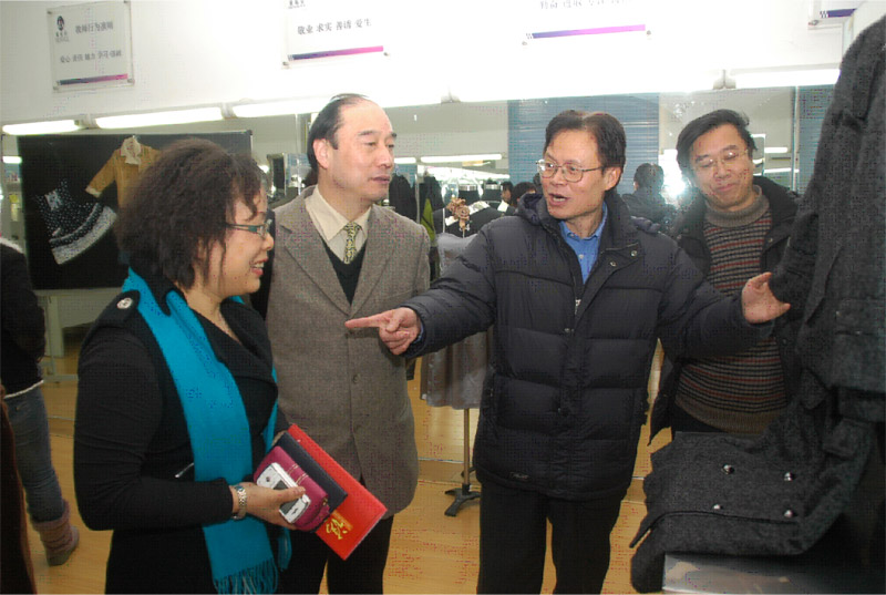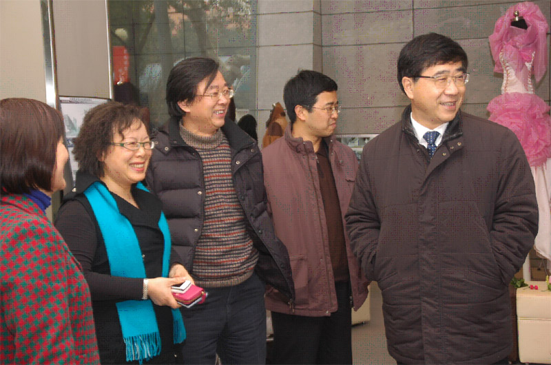 上图浦解明副书记(右二)参观展览并指导工作,《流行色》杂志社副社长、执行总编赵小鲁先生(左二)一道参观展览馆