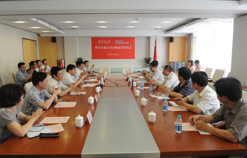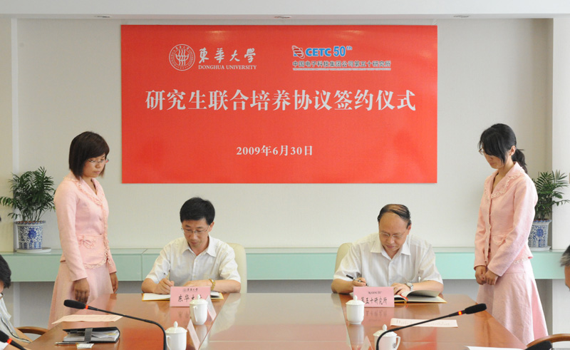 6月30日,我校与中国电子科技集团公司第五十研究所研究生联合培养仪式在松江校区举行。 徐明稚校长出席签字仪式并讲话,朱世根副校长主持签字仪式。 校研究生部副主任舒慧生与五十所科技委主任高永安分别代表双方签署了研究生联合培养协议。