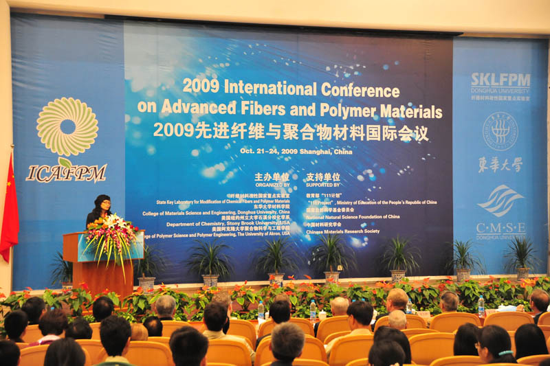 10月23日,2009先进纤维与聚合物材料国际学术会议在我校隆重召开。副校长朱美芳向大会致辞,开幕式后举行主题报告会。 大会还将在此后的时间内举行多场报告会。来自世界各地的专家学者将共同探讨交流纤维材料领域的新的研究成果。