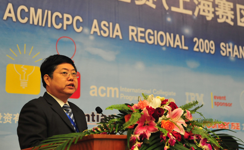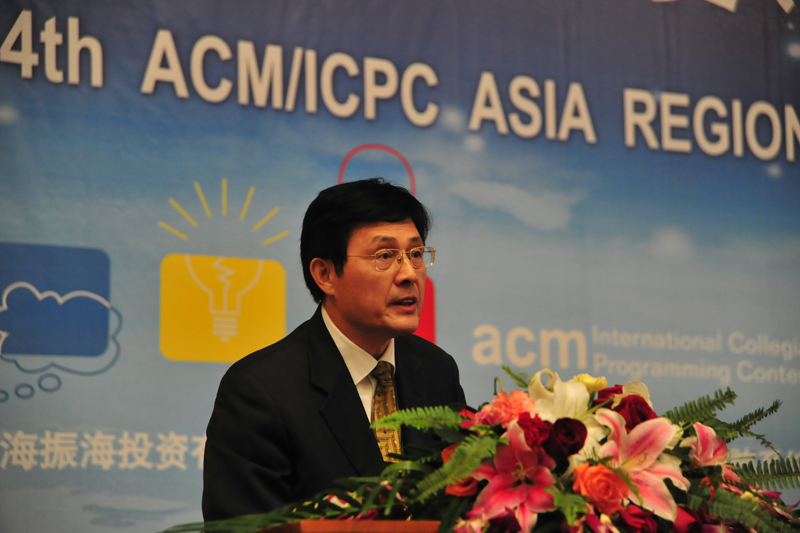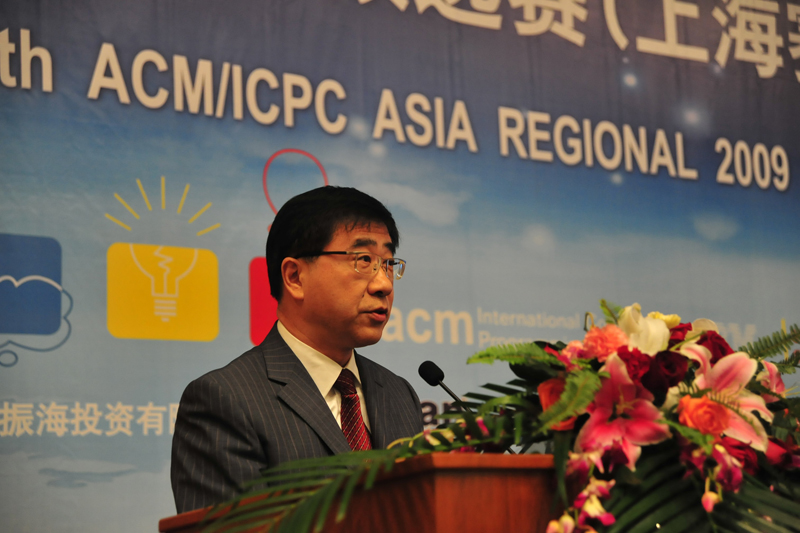 ACM-ICPC亚洲区组委会主席黄金雄在致辞中对东华大学的赛事组织、志愿服务等工作给予了高度评价,对上海市教委的高度重视表示感谢。