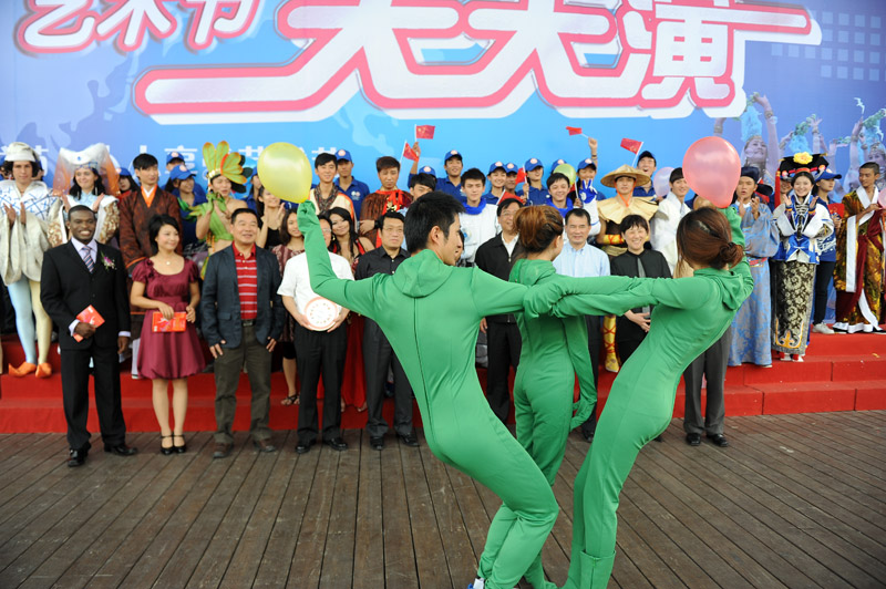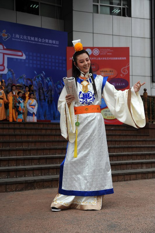 该场演出包括了大型服饰文化秀、印尼乐器弹唱、肚皮舞,和国际艺术节之歌、世博志愿者之歌合唱等多种表演形式。其中,服饰文化秀《时尚东华》中展演的近50套服装全部由我校服装学院师生共同设计,其中四套现代服装是学生设计作品,艺术地体现了中国主要朝代服饰文化特色,让观众充分感受了中华服饰文明的恒久魅力。