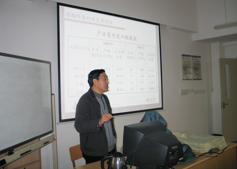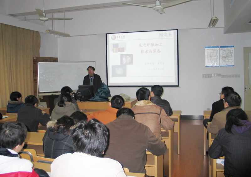 12月15日下午,窗外冬雨淅沥,屋内气氛融融,机械工程学院师生聚在一起,聆听了材料科学与工程学院常务副院长、国家重点实验室副主任王华平教授的题为“先进纤维加工技术与装备”的讲座。王老师从纤维发展现状与趋势、通用纤维加工技术与装备、纳米纤维技术与装备、高性能纤维加工技术等方面,运用翔实的数据和坚实的事例介绍了聚酯纤维行业的发展特征,揭示了大容量聚酯的差别化功能化是我国纤维行业转型升级的关键,阐述了工程装备对纳米纤维、高性能纤维的开发、加工的重要性。王教授勉励机械工程学院青年教师要敢于突破学科界限,加强学科交叉,积极开拓科研工作新思路,他还认为“理念是根本,战略定发展,战术求生存,信心是关键”。讲座之后,王教授还就碳纤维产业化、化纤设备研究的切入点等回答了机械工程学院师生提出的问题。