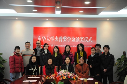 会上校友会吉启华秘书长向杰普公司嘉宾介绍了我校的学科分布、办学特色、人才培养、教学评估等方面的情况,并代表学校感谢该公司对我校教育事业的支持。他指出,杰普奖学金的设立大大促进了双方的合作与交流,对杰普公司和东华大学的发展起到了积极的双赢作用;获奖的同学们应该继续奋发学习,增长知识以报效祖国、回报学校,并在今后积极地了解和参与杰普的事业;同时也期待杰普公司能为东华优秀学子们提供更广泛的资助,并祝杰普公司的事业更为兴盛。