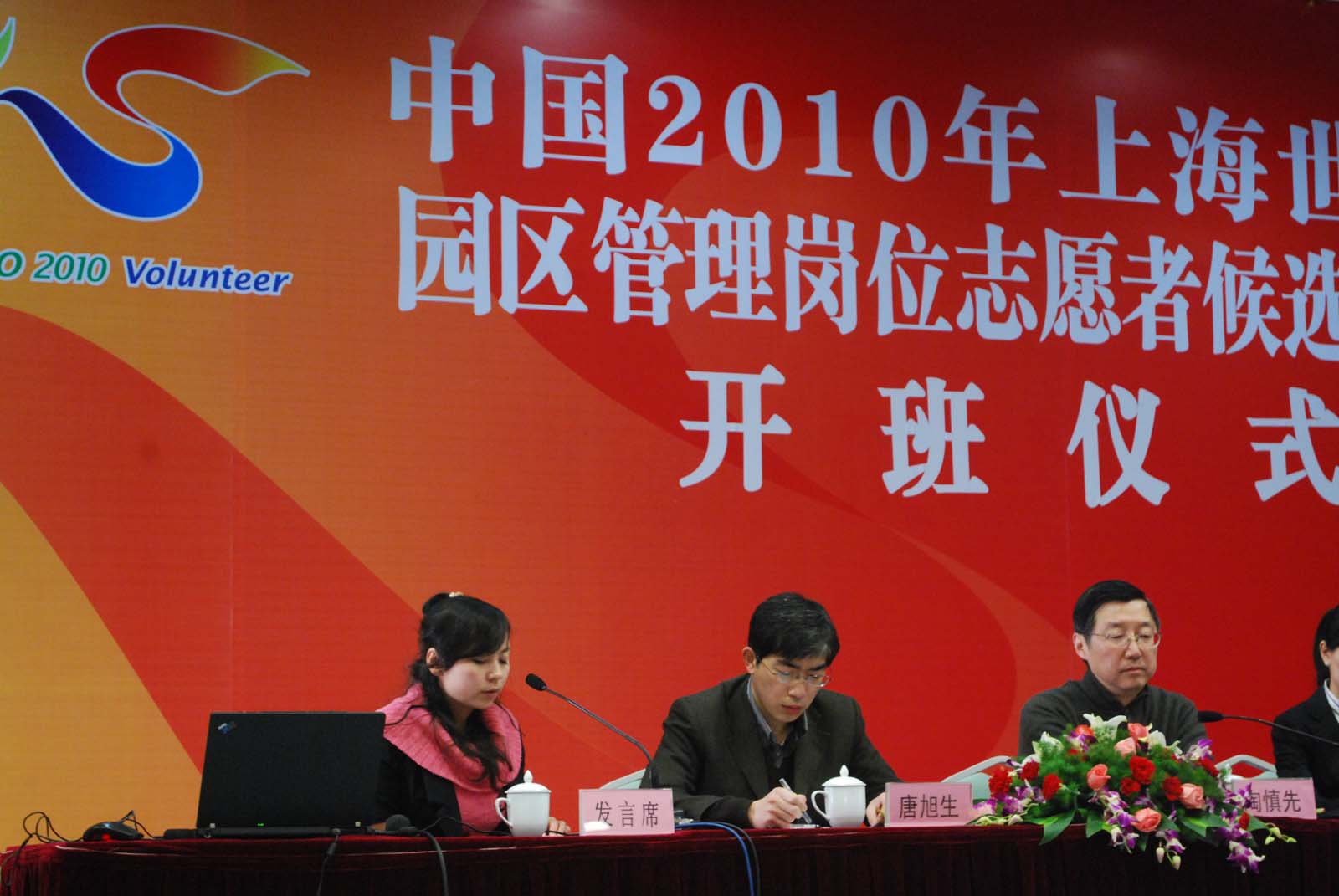 在23日的开班仪式上,我校人文学院08级硕士研究生张寅孜代表参加培训的志愿者发言。她代表所有参加此次培训的中国2010年上海世博会园区管理岗位志愿者候选人庄严承诺,将积极认真地完成此次培训,全面掌握世博会园区管理岗位志愿者所需具备的知识和技能,培养良好的个人素质与精神面貌,将自己塑造成为世博会最优秀志愿者队伍的一员,在上海世博会上展现青年志愿者勇担责任的魄力、包容兼具的实力、乐观向上的动力和热情可爱的活力。