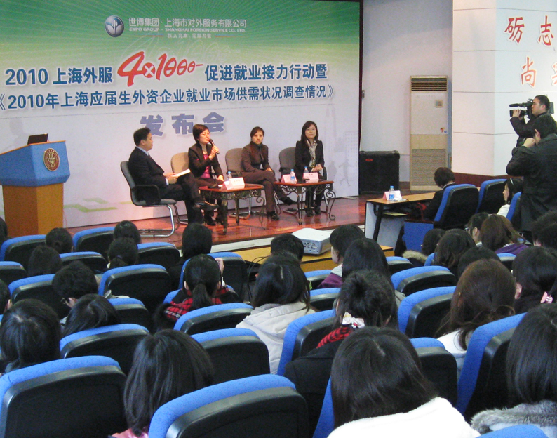 现场上海外服还公布了《2010年上海应届生外资企业就业市场供需状况调查情况》,在应届毕业生中倡导Career(职业生涯)=Capability(能力)+Confidence(自信)+Contribution(贡献)+Care(关爱)的4C理念,着力发挥人才服务行业领军企业的作用,构建促进大学生就业的平台,取得了良好的反响。最后此次论坛还举行了“大学生外企体验日活动”启动仪式,在后续的活动中我们将选拔我校优秀应届生及大三学生参与外企体验日,以CRF中国杰出雇主获奖优质企业为体验单位,让不同专业学生去不同行业外企进行体验,让更多大学生对外企有更深切、更直观的感受。