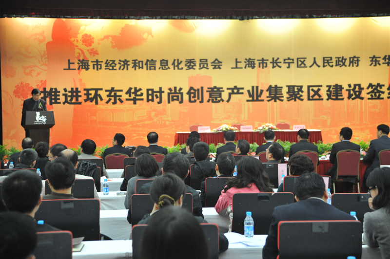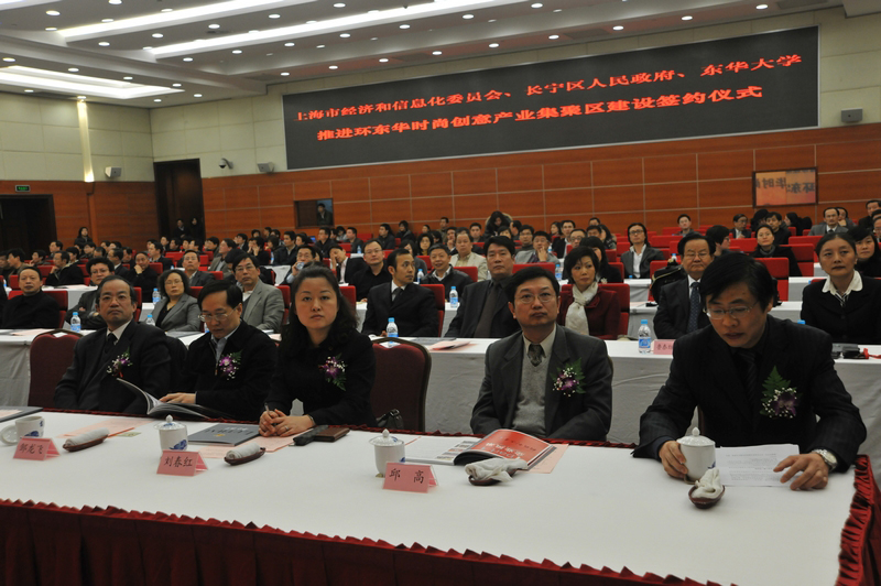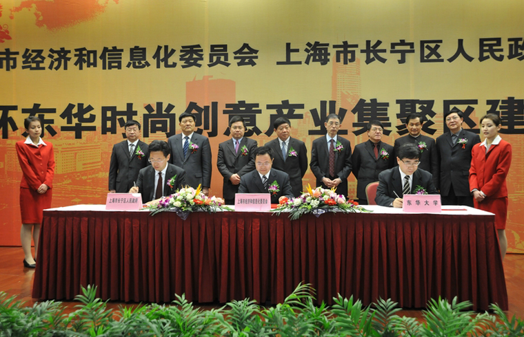 我校与市上海市经济和信息化委员会、长宁区人民政府三方合作,整合资源优势、聚焦重点产业,打造环东华时尚创意产业集聚区。日前,三方在长宁区区政府举行了 “环东华时尚创意产业集聚区建设”签约仪式。 校党政领导朱绍中、徐明稚、宋立群、俞建勇、陈招应、刘春红、邱高以及学校相关学院部处负责人出席了签约仪式。
