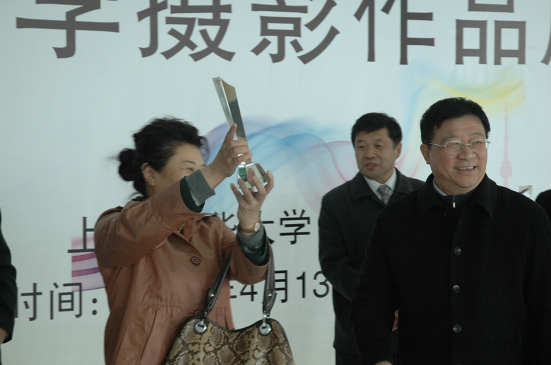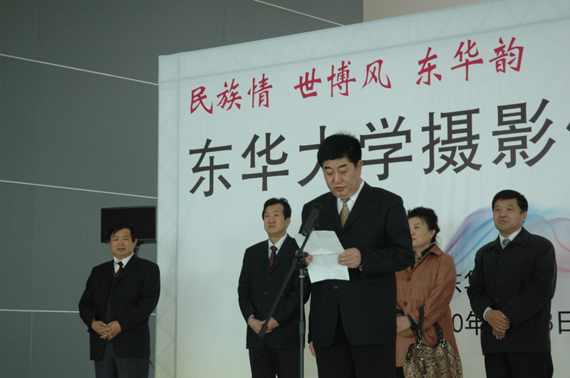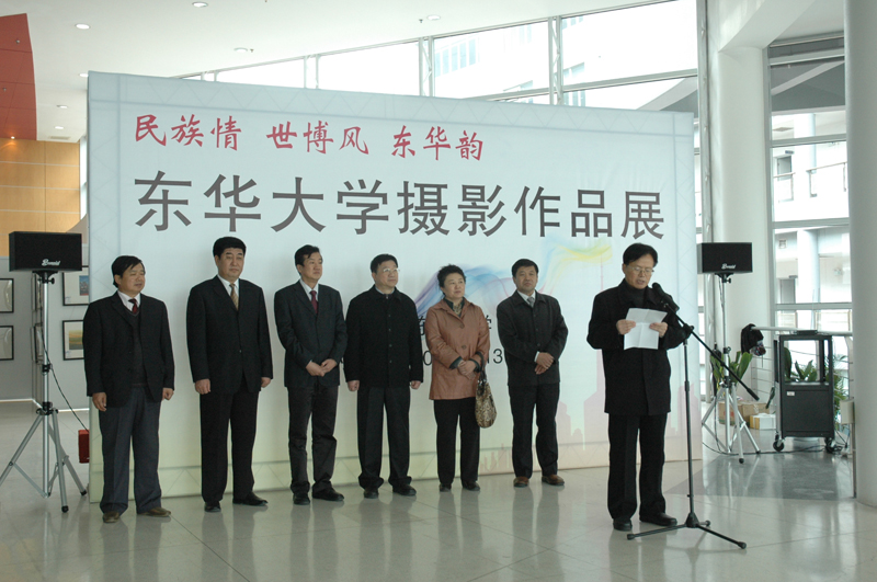 4月13日“民族情、世博风、东华韵”2010东华大学摄影大赛作品展在松江校区图文信息大楼二楼大厅举行开幕仪式。 开幕式上,校党委副书记浦解明和特邀参展方代表内蒙古鄂温克自治旗政协主席齐全致辞。 校党委书记朱绍中和副书记浦解明代表我校师生与内蒙古呼伦贝尔市和鄂温克自治旗互赠纪念品并合影留念。 本次展览在松江校区持继展出一周,此后将在松江区、方松街道和松江大学城的其他高校的支持下作巡回展出。