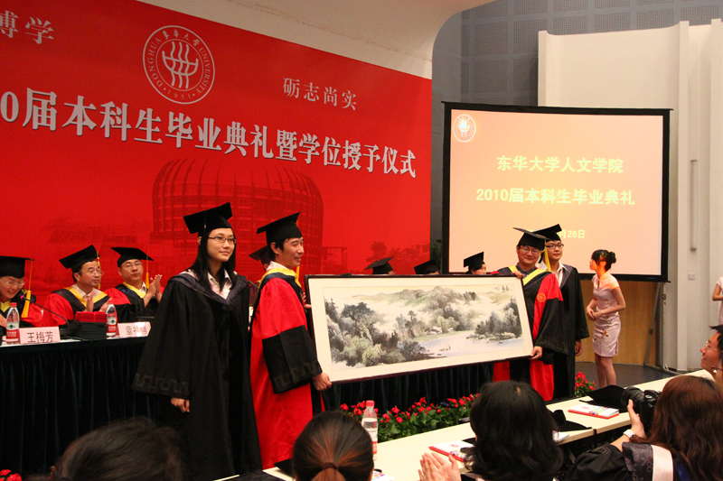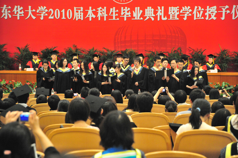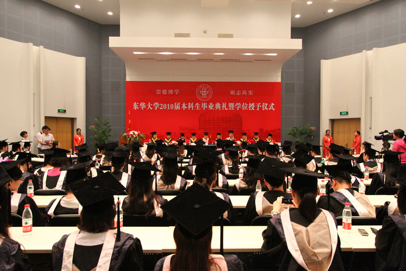 6月28日至30日,我校在松江校区和延安路校区隆重举行2010届本科生毕业典礼。校党政领导朱绍中、徐明稚、王以刚、浦解明、殷耀、宋立群、俞建勇、陈招应、刘春红、邱高参加了毕业典礼,并为毕业生颁发毕业证、授予学位。 毕业生纷纷向学院赠送精美的纪念品,以表达对学校的感恩之情。
