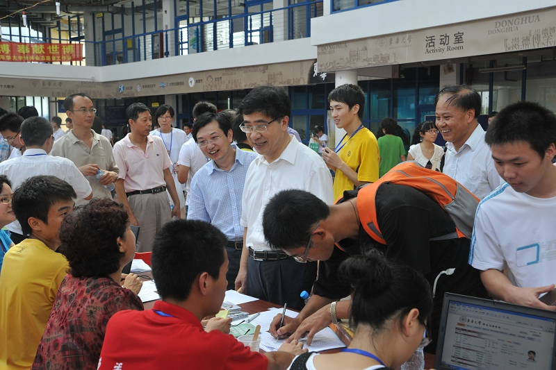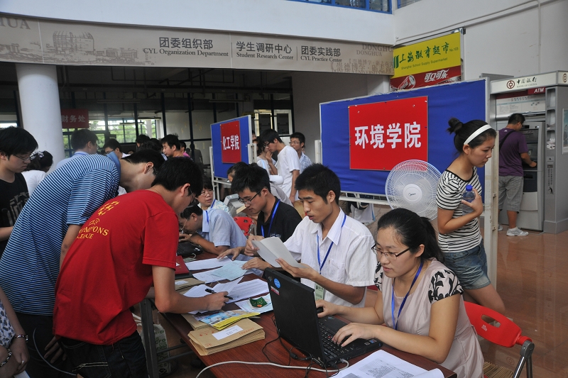 9月4日、5日,东华大学延安路、松江校区迎来了2010级本科生和研究生,校党政领导徐明稚、浦解明、殷耀、宋立群、陈招应、邱高一行前往报到现场看望新同学,慰问在现场工作的老师和学生志愿者。学校特别关注家庭困难新生,专门开辟了绿色通道,校领导还亲手为他们送上爱心大礼包。 据悉,今年将有来自全国各地的3750余名大一新生、1890余名研究生新生以及来自世界各地的留学生们入学。