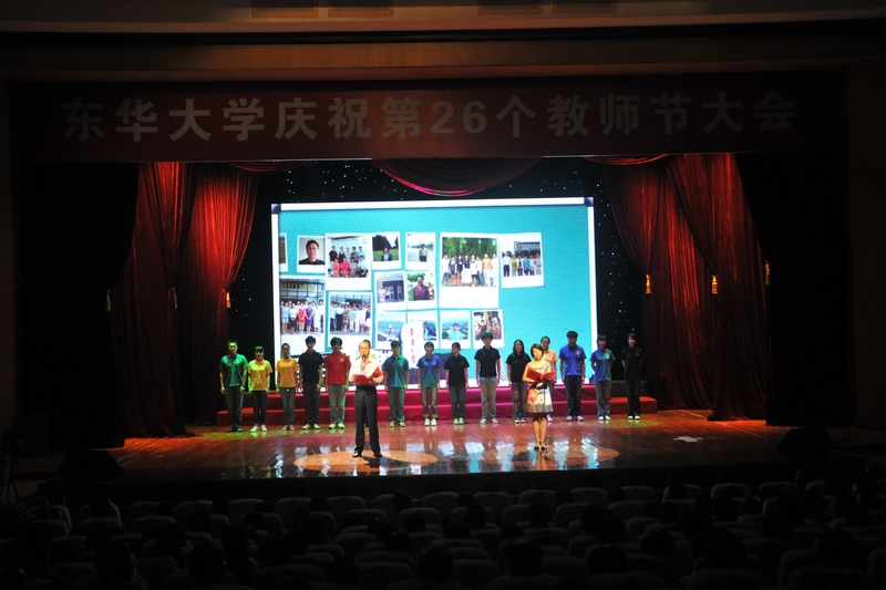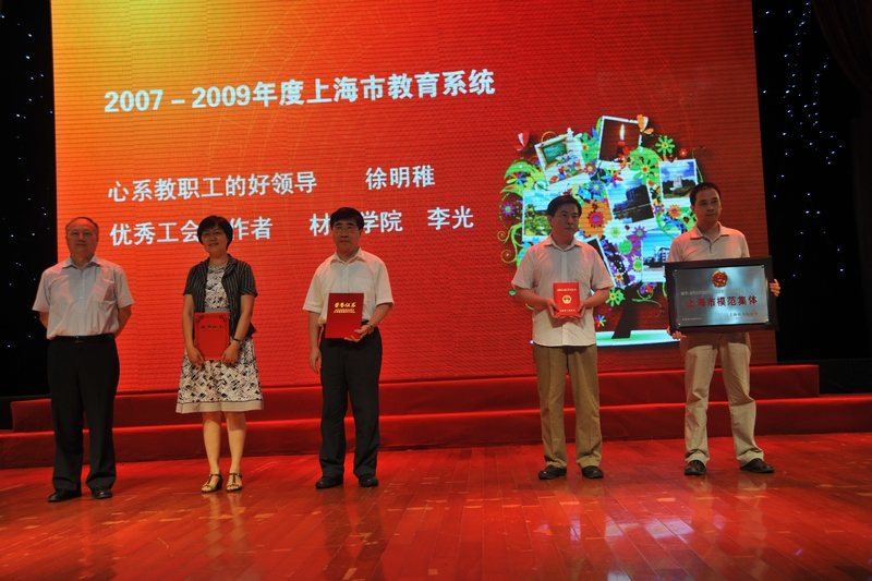 9月7日,我校在锦绣会堂隆重举行庆祝第26个教师节大会,校党政领导朱绍中、徐明稚、王以刚、浦解明、殷耀、宋立群、俞建勇、陈招应、刘春红、邱高,上海市教育工会副主席张中韧,工程院院士周翔、郁铭芳,千余名师生代表参加了大会。大会分“向平凡致敬”、“与平凡相伴”、“为平凡喝彩”三个篇章,展现了在平凡的工作岗位上的教师们的风采,表彰了获得2009-2010年度教育部、上海市及学校各类荣誉的集体和个人。