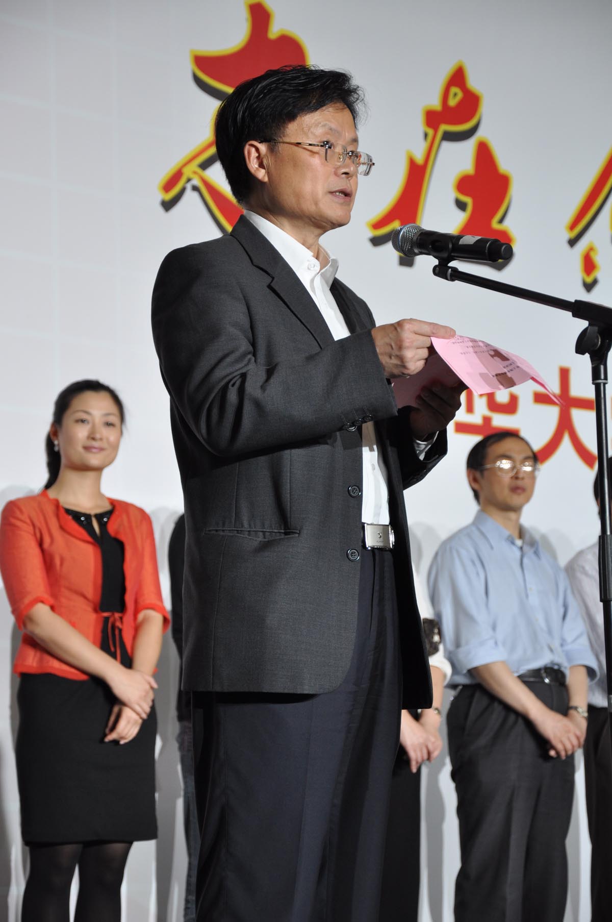誓师大会最后,校党委副书记浦解明对全校志愿者做动员,他号召全体东华志愿者们用细致的服务、灿烂的微笑、东华的智慧去践行世博精神,在世博中感悟、在服务中磨练、在实践中成长,为“成功、精彩、难忘”的中国2010年上海世博会递上最亮丽的名片。