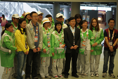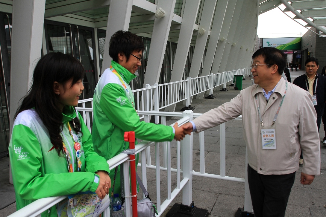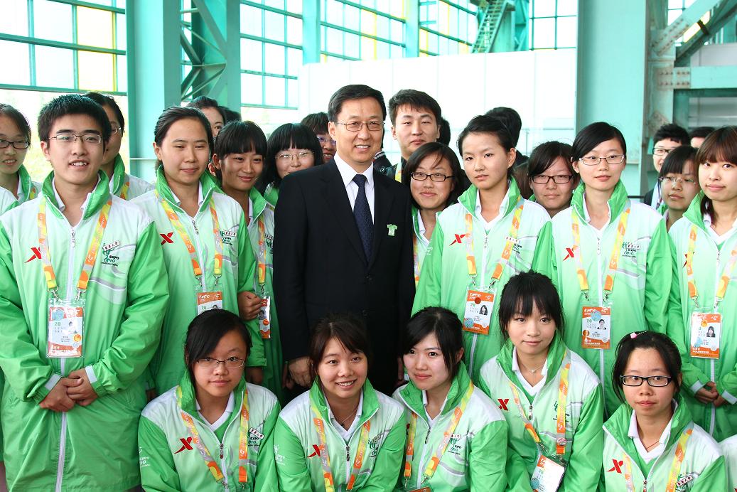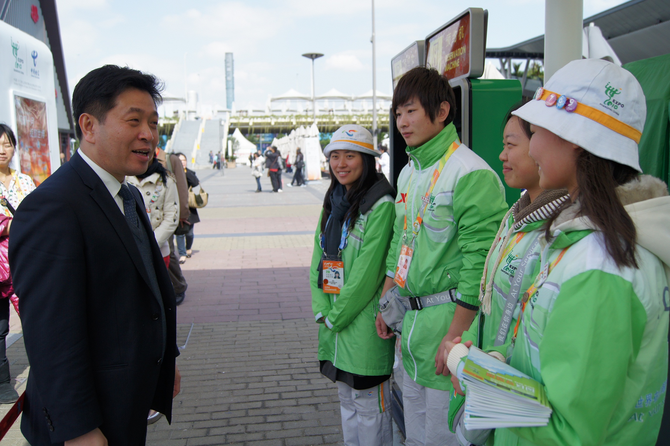 自10月18日,我校志愿者在世博会志愿服务岗位正式上岗以来,上海市委书记俞正声、市长韩正在世博园与我校志愿者亲切交谈,并接受志愿者们赠送的纪念徽章。上海世博局党委副书记许伟国亲切看望我校志愿者,并与志愿者合影留念。校党政领导朱绍中、徐明稚、王以刚、浦解明、宋立群、俞建勇、陈招应、刘春红、邱高也入园对辛勤工作在各个岗位上的志愿者表示亲切的问候。