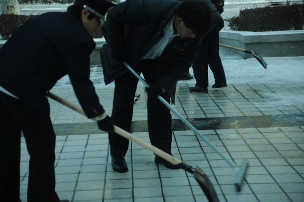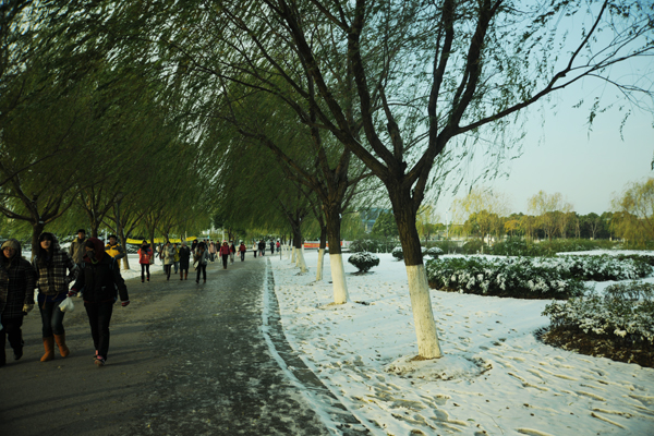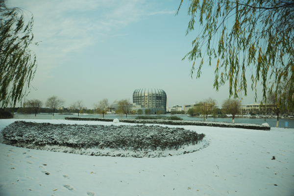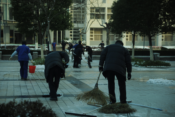 瑞雪飘飞,雪妆东华。一场不约而至的大雪给东华校园披上一层银色的素装。12月16日清晨,物业的职工们就在校园的路上扫雪,保证学生们的正常上课。