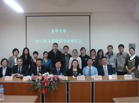 11月1日下午13点30,东华大学2011乌斯特奖学金颁奖会在纺织学院楼3004会议室召开。乌斯特技术有限公司执行副总裁、亚洲区运营总裁韦乃铭,纺织技术执行副总裁 Mr. Thomas Nasiou,乌斯特苏州有限公司中国区技术经理刘智玉,东华大学校党委副书记浦解明,纺织学院党总支书记崔运花,纺织学院院长邱夷平,学生处副处长宋德军,管理学院党总支副书记于光出席了会议,会议由纺织学院党总支副书记刘雯玮主持。
