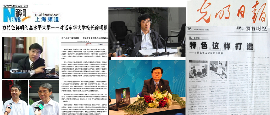 图3『专访专报』:光明日报、解放日报、新华网、上海广播电台及上海教育新闻网等专访校领导,以“对话东华大学校长徐明稚 高校特色这样打造”“将‘纺织’做到极致——东华大学坚持特色办学的启示”“东华纺织学科进入世界一流 四门学科进入权威学术指标‘全球百里挑一’行列”等为题,报道学校60年校庆活动、协同创新及特色办学成果。