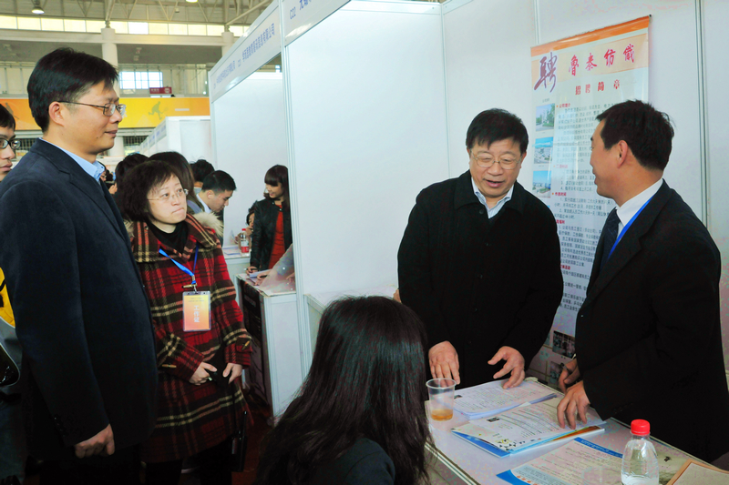 11月24日,松江大学城七校毕业生联合招聘会在我校举行。校党委书记朱绍中、副书记殷耀亲临招聘会现场,亲切慰问参会用人单位代表和现场工作人员,与部分用人单位和毕业生进行了交流。
