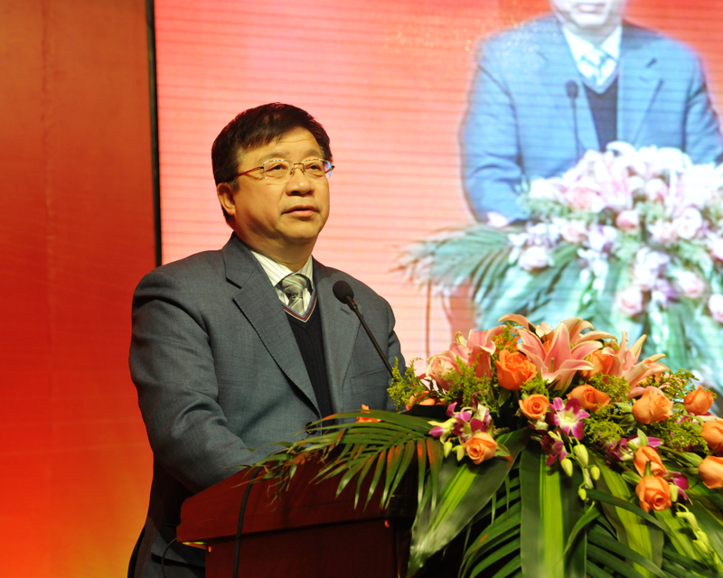 图片一:校党委书记朱绍中在颁奖典礼上致辞。
