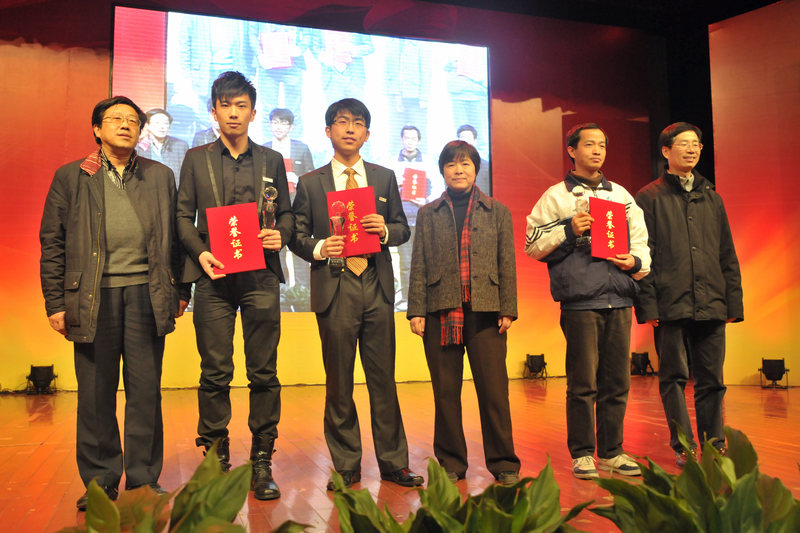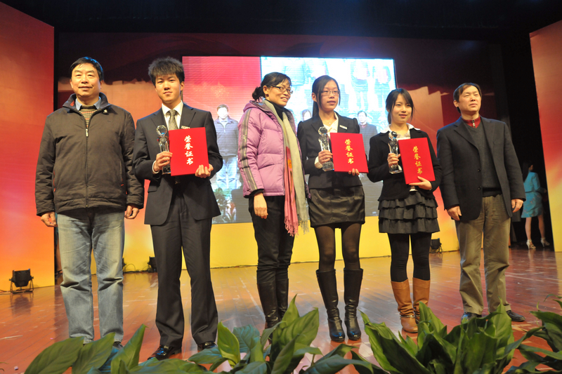 图片二、图片三、图片四:计算机学院10级硕士生王阳、材料学院10级硕士生林佩洁、环境学院10级本科生叶文婷、化工生物学院08级本科生万凌雁、纺织学院09级博士生丁若垚、理学院09级本科生顾全局、机械学院10级硕士生刘昭、机械学院09级硕士生程欢、服装学院08级本科生何慧丽、计算机学院08级本科生皇甫杨获选“2011东华大学学生年度人物”并接受颁奖。