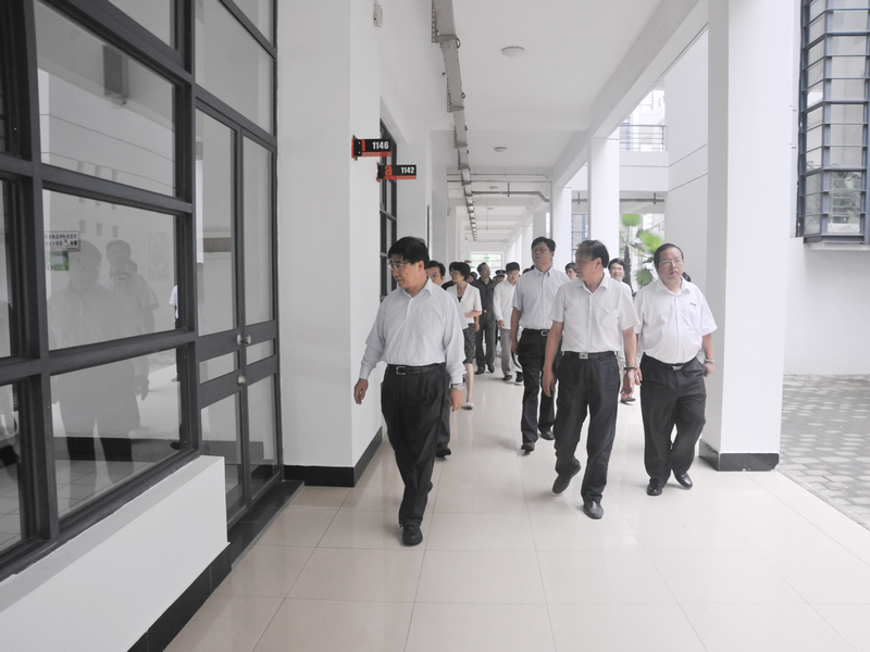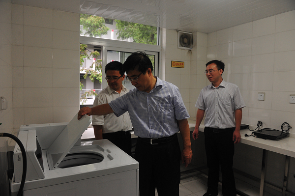 新学期开学在即。近日校长徐明稚,党委副书记殷耀,副校长陈招应、邱高等校领导,在校长办公室、教务处、研究生部、资产管理处、基建后勤处、延安路校区办公室、保卫处、后勤集团等有关部门负责人的陪同下,深入松江、延安路两校区各教学、生活场所,视察校园环境。