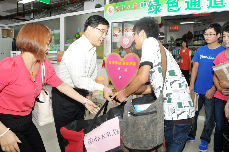 9月15日,我校迎来5900名2012级新生,其中本科生3760名,研究生2160名。校领导亲临报到现场,视察新生报到情况,并慰问现场工作人员。 图片一:校园内布置一新,喜迎新生 图片二:新生报到处井然有序 图片三、图片四:校党委书记朱绍中与报到新生亲切交谈 图片五、图片六:徐明稚校长在绿色通道询问困难学生情况并向他们发放爱心大礼包 图片七、图片八:报到处各个学院设立了专门咨询点,工作人员热情地回答学生家长的提问