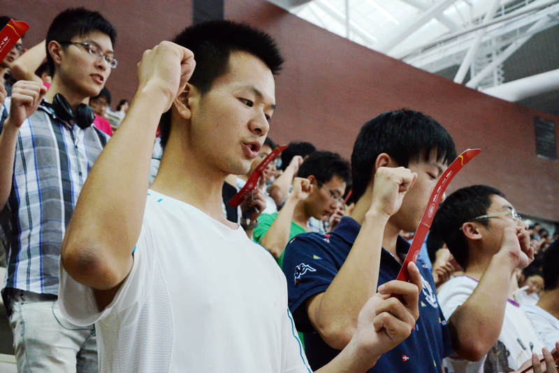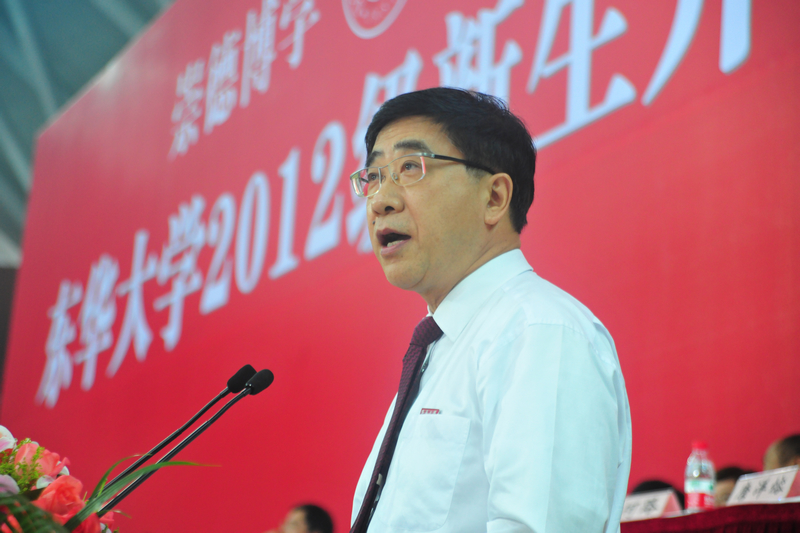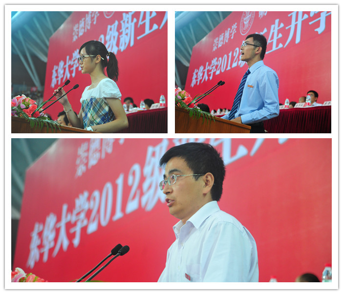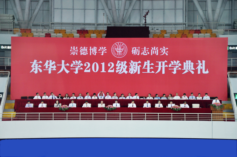 9月21日,我校2012级新生开学典礼举行,2012级3760名本科生和2160名研究生新同学共聚上海市大学生体育中心,开启人生新的征程。 图片一:2012级新生开学典礼主席台 图片二:徐明稚校长发表讲话 图片三:2012级新生代表唐洋榕(左上),在校生代表何路(右上)以及教师代表徐广标(下)分别发表讲话 图片四:全体新生宣誓 图片五:座无虚席的开学典礼现场