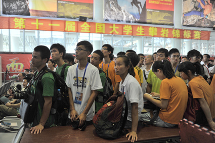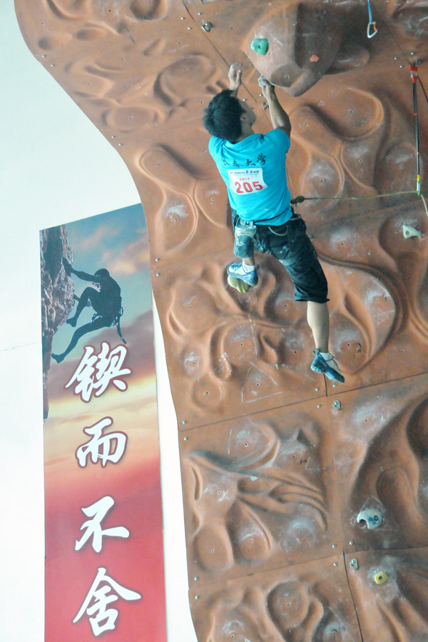 7月26日上午,由中国大学生体育协会攀岩分会主办、我校作为主席单位承办的第十一届全国大学生攀岩锦标赛在松江校区体育馆开幕,这也是该项赛事首次进驻上海。来自北京大学、香港大学、澳门大学、东华大学等48所高校的404位在校生参加了本次比赛,创下历届全国高校攀岩赛事之最。在为期4天的比赛中,运动员们将分列“普通高校组、体育院校组、专业组”参与难度赛、速度赛、攀石赛和团体赛等项目的角逐。攀岩运动一直是户外运动的半壁江山,是一项集健身、娱乐、竞技于一体的极限运动,被称为“峭壁上的芭蕾舞”,近年来在各高校以“俱乐部、学生社团、选修课”等形式得以推广,赢得学生喜爱。大赛吸引了上海电视台、中国新闻社、解放日报、新民晚报、东方网等众多媒体现场报道。 |