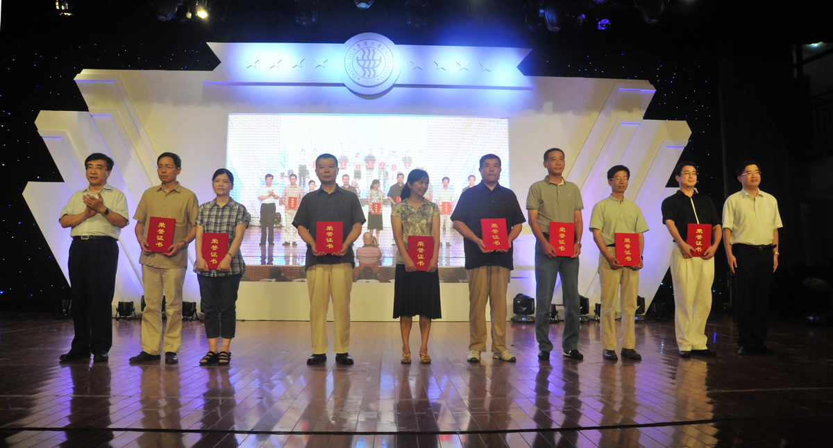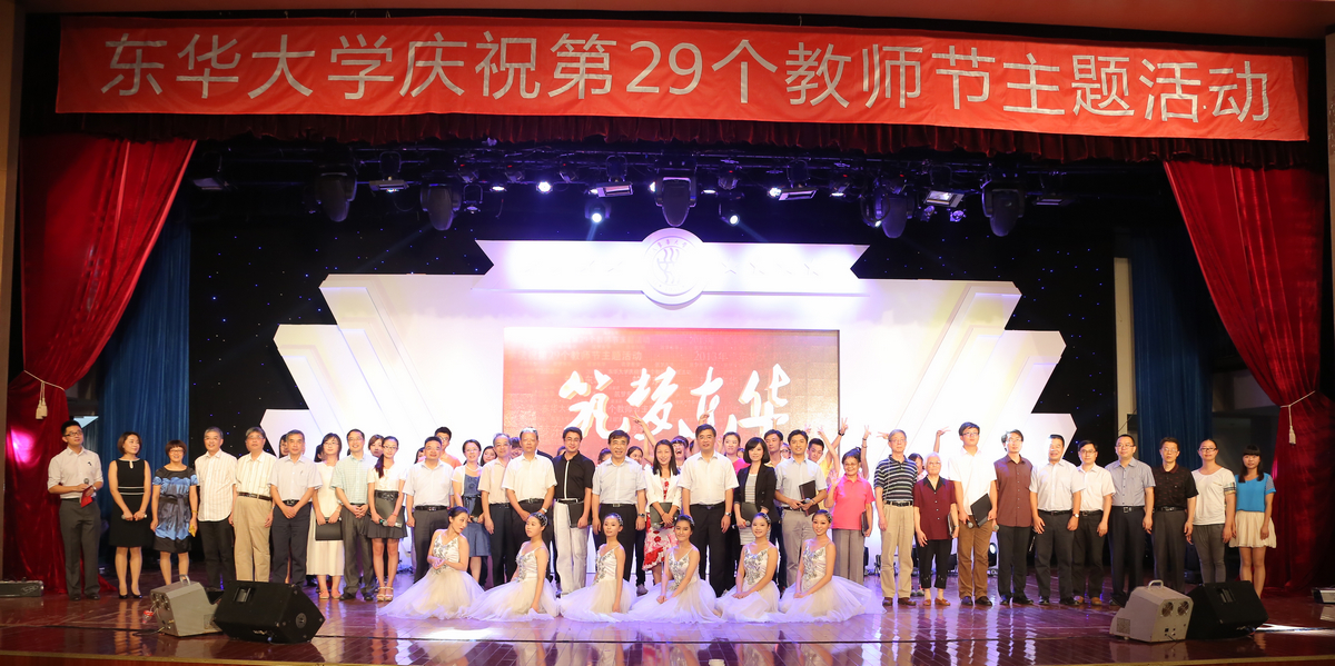 图片说明: 图片一:主题活动现场 图片二:党委书记朱民致辞 图片三:校领导为首届东华大学“优秀教学育人奖”颁奖并合影留念 图片四:东华大学第十三届“我心目中的好老师”接受学生献花 图片五:从事教育工作三十周年教育工作者代表接受表彰 图片六:六位教师代表分别接受主持人采访 图片七:四位学生代表畅谈《东华助我成才梦》并与恩师拥抱 图片八、九、十:自编自导自演的文艺演出展示了东华人的风采