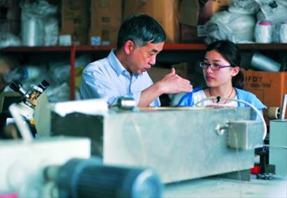 王依民教授在指导学生实验科研/晨报记者 陈征