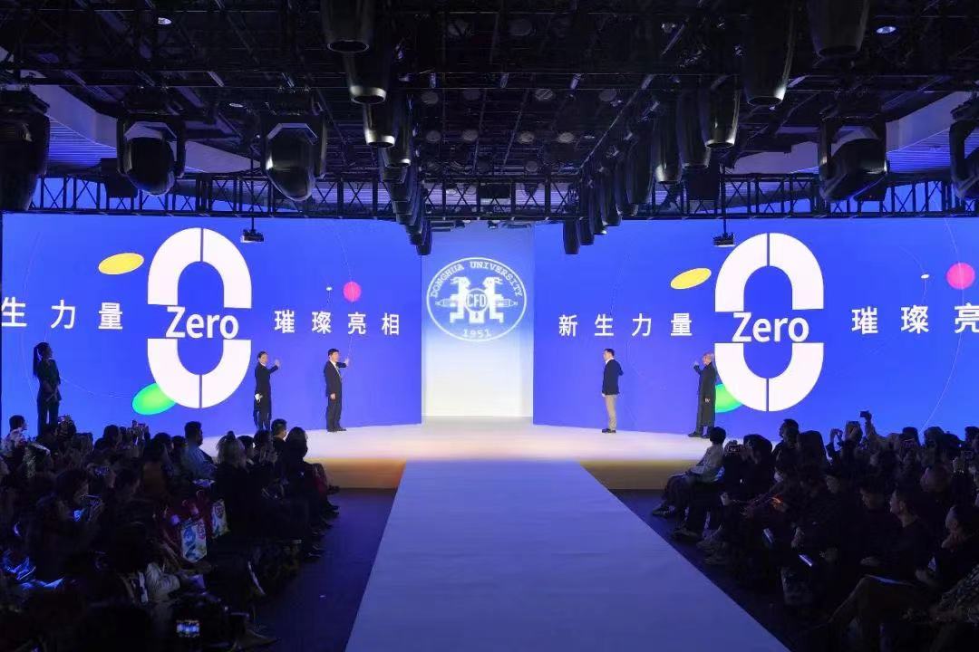 与会嘉宾领导共同启动第20届环东华时尚周暨东华大学服装与艺术设计学院毕业季开幕。服装与艺术设计学院2023届中日合作班(梭织)毕业作品在开幕式上展示。