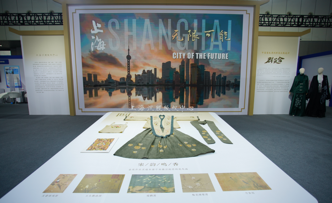 东华大学携上海汉服版权中心亮相,以“传统文化的传承与创新”为主题,探索中华传统文化和现代汉服流行文化的新趋势,通过将文物与现代汉服设计结合的方式,让观众更深入了解中国传统历史和文化,为现代汉服设计提供新的灵感和方向。