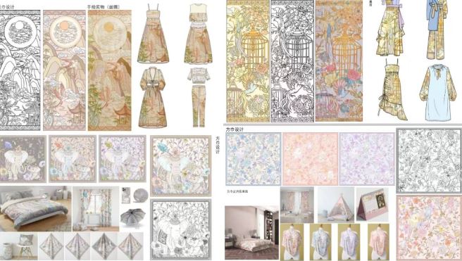 一个偶然的契机使得她们发现了“真爱”。“记得那是第一次参观学校的纺织服饰博物馆,博物馆里精美的刺绣图案,巧妙的拼布工艺,独特的扎染艺术,深深吸引了我们。”宇萱回忆道。进校后,姐妹两人分在了不同的班级。然而,通过半年的专业课程启蒙学习带着对创意创造和中华优秀传统文化的热爱,两人最终选择了“纺织品设计”作为她们的专业方向。“上了大量的专业课之后,才知道自己‘格局没打开’,才有了解到纺织品设计的涉及面很广,包含服饰、家纺、玩偶等等,纺织品设计是一个创造性的领域,在这个领域中,设计师必须具备对面料,颜色,图案和纹理的深入理解,并且要能够将这些元素巧妙地结合起来,打造出独特、时尚的纺织品。”