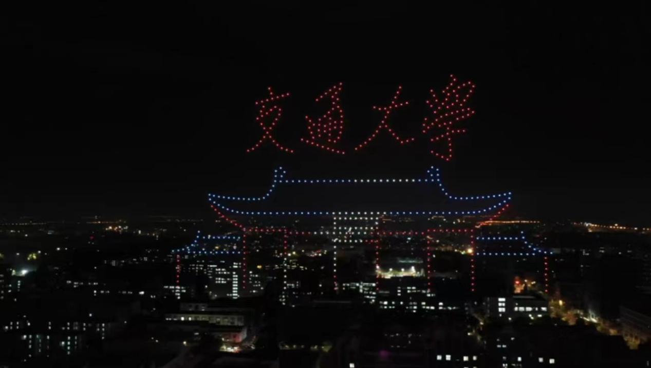 上海交通大学举办庆祝毕业无人机灯光秀。