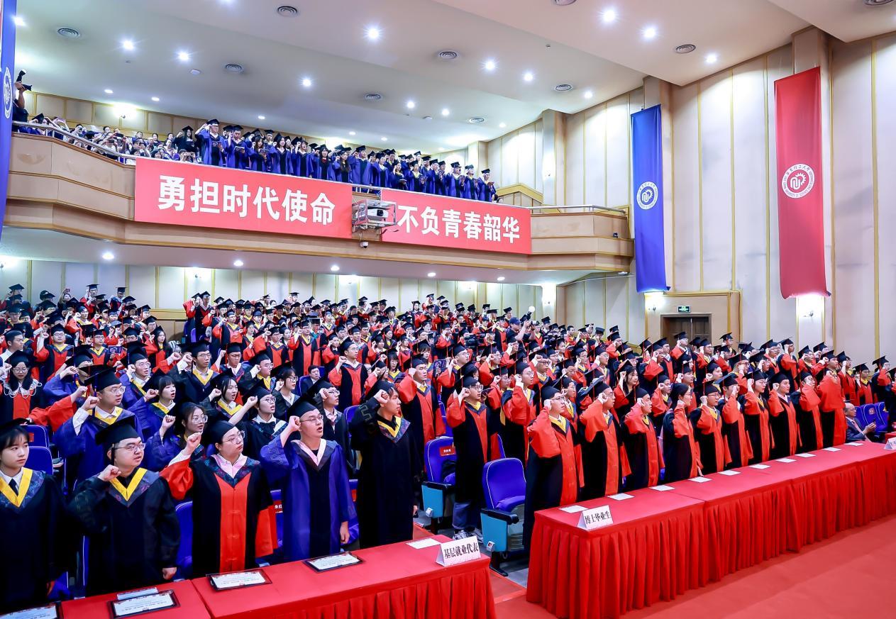 华东理工大学校长轩福贞从分析“以创新和变革为典型特征的新质生产力”开讲,围绕创新和卓越两个关键词,对毕业生提出了三个期望:志存高远,在胸怀家国中定位卓越追求;开拓进取,在守正创新中抵达未知之境;笃行实干,在自我超越中成就非凡人生。他鼓励同学们走出局限思维的“洞穴”和“信息茧房”,时刻保持“看见”的能力,勇敢应对每一个挑战,在内外兼修的探索中实现“吐故纳新”和自我超越。