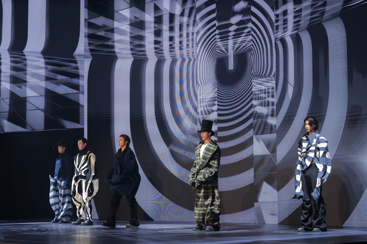 来自东华大学的16名新锐设计师带着60套原创作品将“U+”的理念演绎得淋漓尽致。本次秀演以衣为载,以尚为策,东方为源,突破传统的服装走秀表演模式,通过三大篇章“Quality(优)、NEW(新)、Artificial Intelligence(智)”,结合现场数字媒体技术,实现虚实相间、未来复古,融声、光、画、表演为一体的创新型综合设计表达。