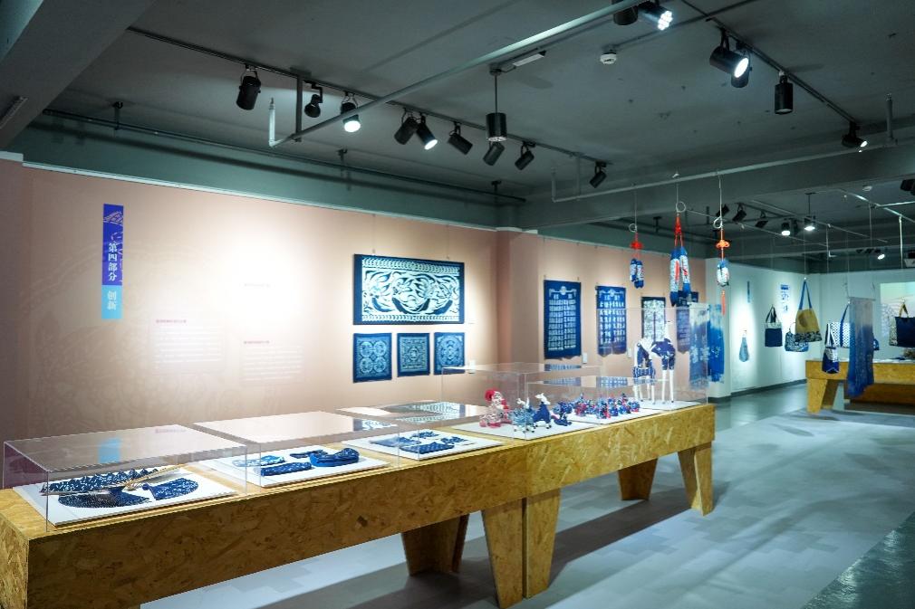 蓝印花布又称靛蓝花布,俗称药斑布、浇花布等,兴盛于明清,集实用性与艺术性于一体,以蓝白素雅闻名于世。蓝印花布传统印染技艺于2006年被列入首批国家级非物质文化遗产名录。2013年南通蓝印花布获批中国地理标志产品。策展人东华大学上海纺织服饰博物馆馆长卞向阳说:“我们将蓝印花布非遗的保护、收藏、传承和创新融进校园,希望在中华纺织服饰文化传承与创新方面作出更多贡献。”