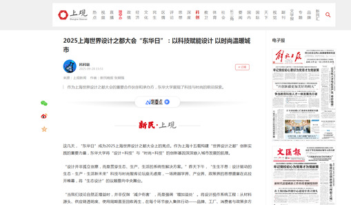 作为上海世界设计之都建设的“合伙人”,东华大学凭借“设计+科技”和“时尚+科技”的硬实力,不仅将航天、低碳等大国需求落地,更让市民生活愈发美好。(时间:2025-09-28 来源:上观新闻 作者:新民晚报 张炯强)