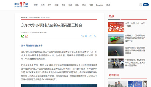 在9月23日至27日举行的第二十五届中国国际工业博览会(以下简称“工博会”)上,东华大学集中展示十余项涵盖新材料、生命健康、高端装备等领域的创新成果,其中,“东华牌材料”颇为惊艳。
