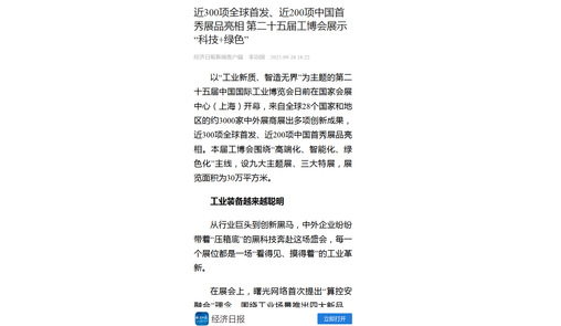 以“工业新质、智造无界”为主题的第二十五届中国国际工业博览会日前在国家会展中心(上海)开幕,来自全球28个国家和地区的约3000家中外展商展出多项创新成果,近300项全球首发、近200项中国首秀展品亮相。本届工博会围绕“高端化、智能化、绿色化”主线,设九大主题展、三大特展,展览面积为30万平方米。