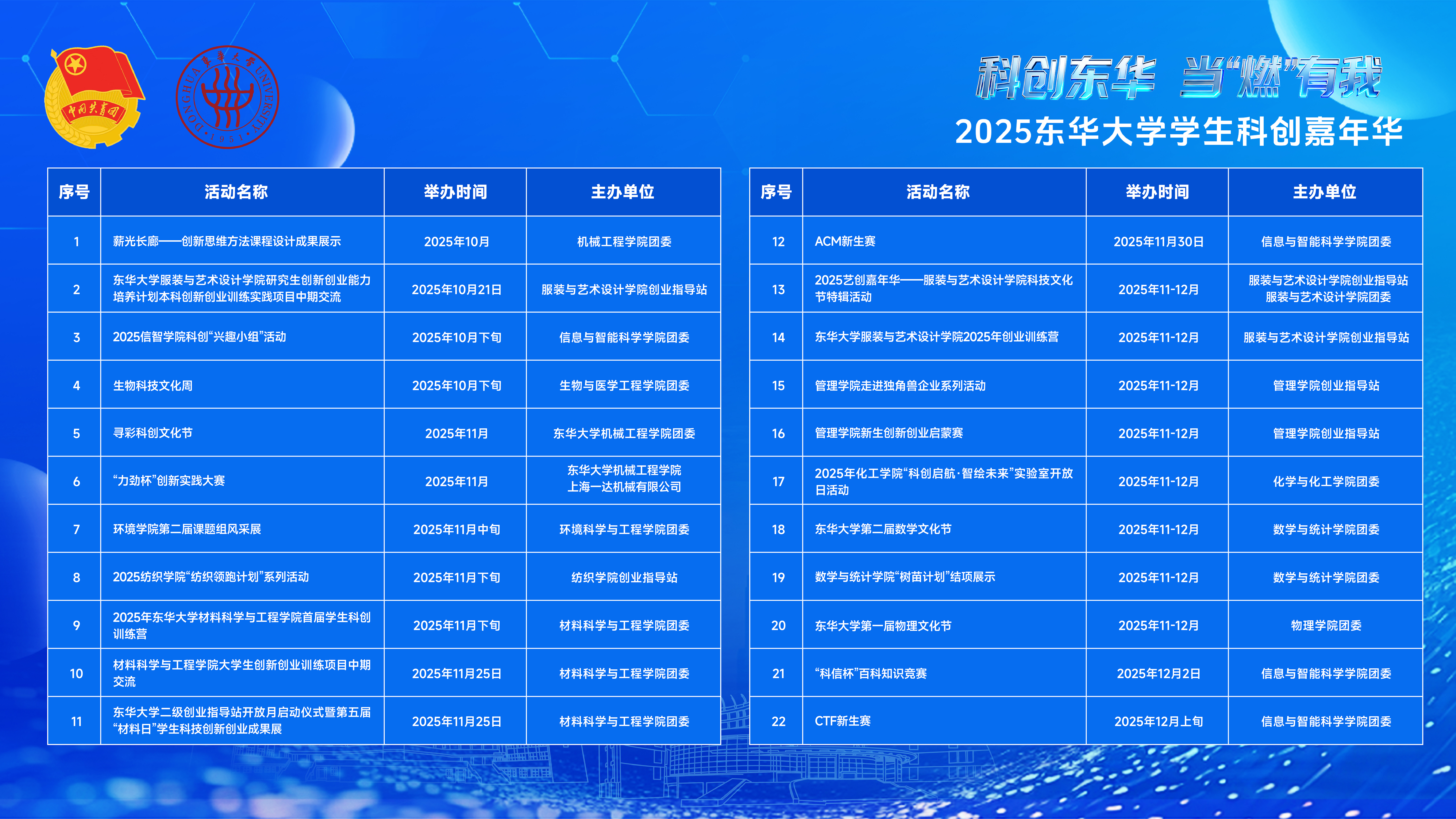 “科创东华,当‘燃’有我!” 诚邀全体师生参与,在科创与文化的碰撞中探索奥秘、激发灵感,共谱东华科创新篇章!