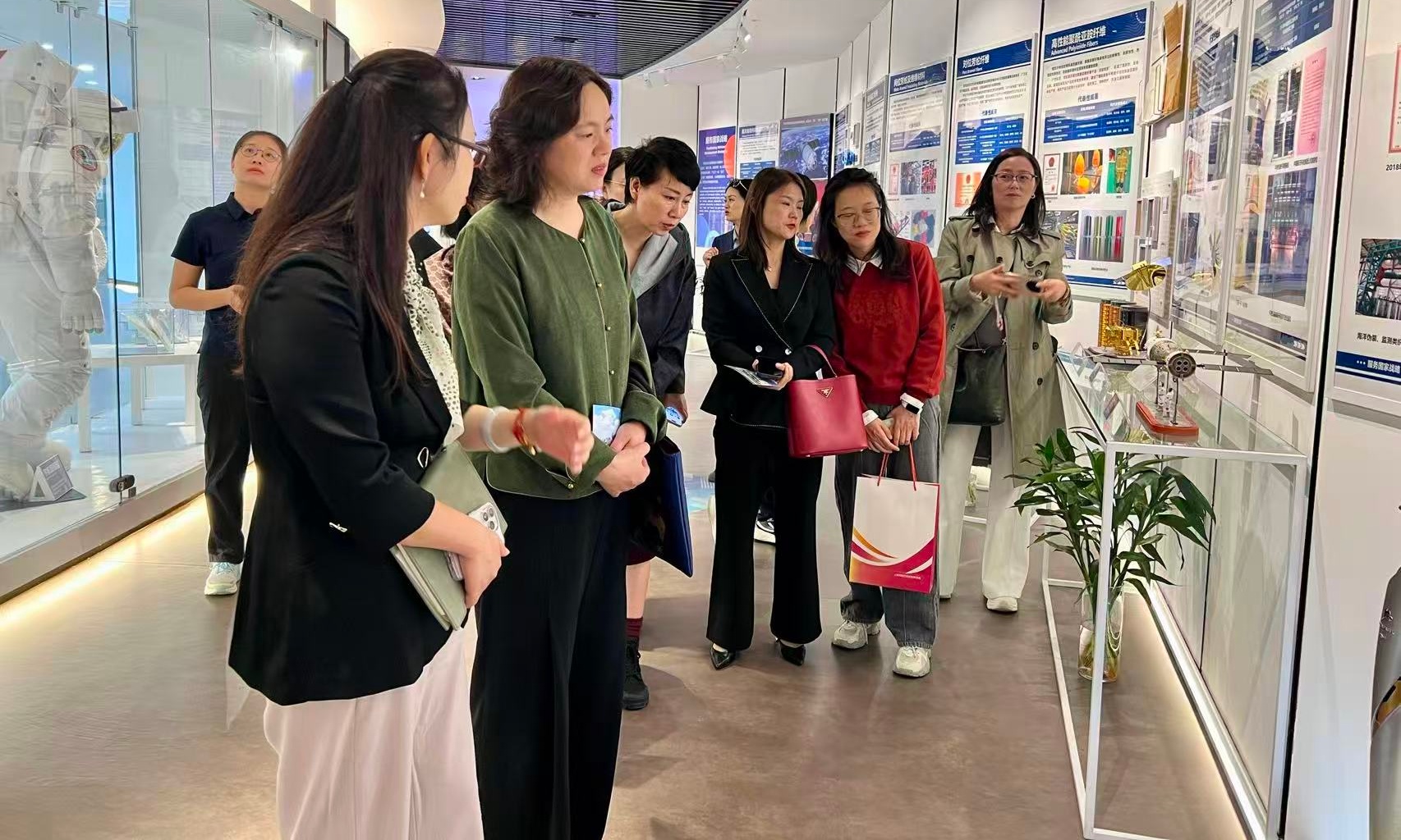 校妇工委主任储玲玲对张军梅一行的到来表示欢迎和感谢,她从夯实成长平台、拓展展示舞台、凝聚巾帼力量三方面,介绍我校在促进女性成长和推动女教职工全面发展方面的工作,阐述我校女教职工在推动科创融合、服务地方发展中承担的责任和取得的成绩,愿区校携手共同为松江区的高质量发展贡献更多“她智慧”“她力量”。国际合作处处长、区女知联会会长覃小红介绍了女知联会在链接女性人才、促进产学研合作方面的工作成效和未来展望,提出通过深入整合资源、扩大辐射力度、关注女大学生成长成才等方式更好地发挥区女知联会作用。