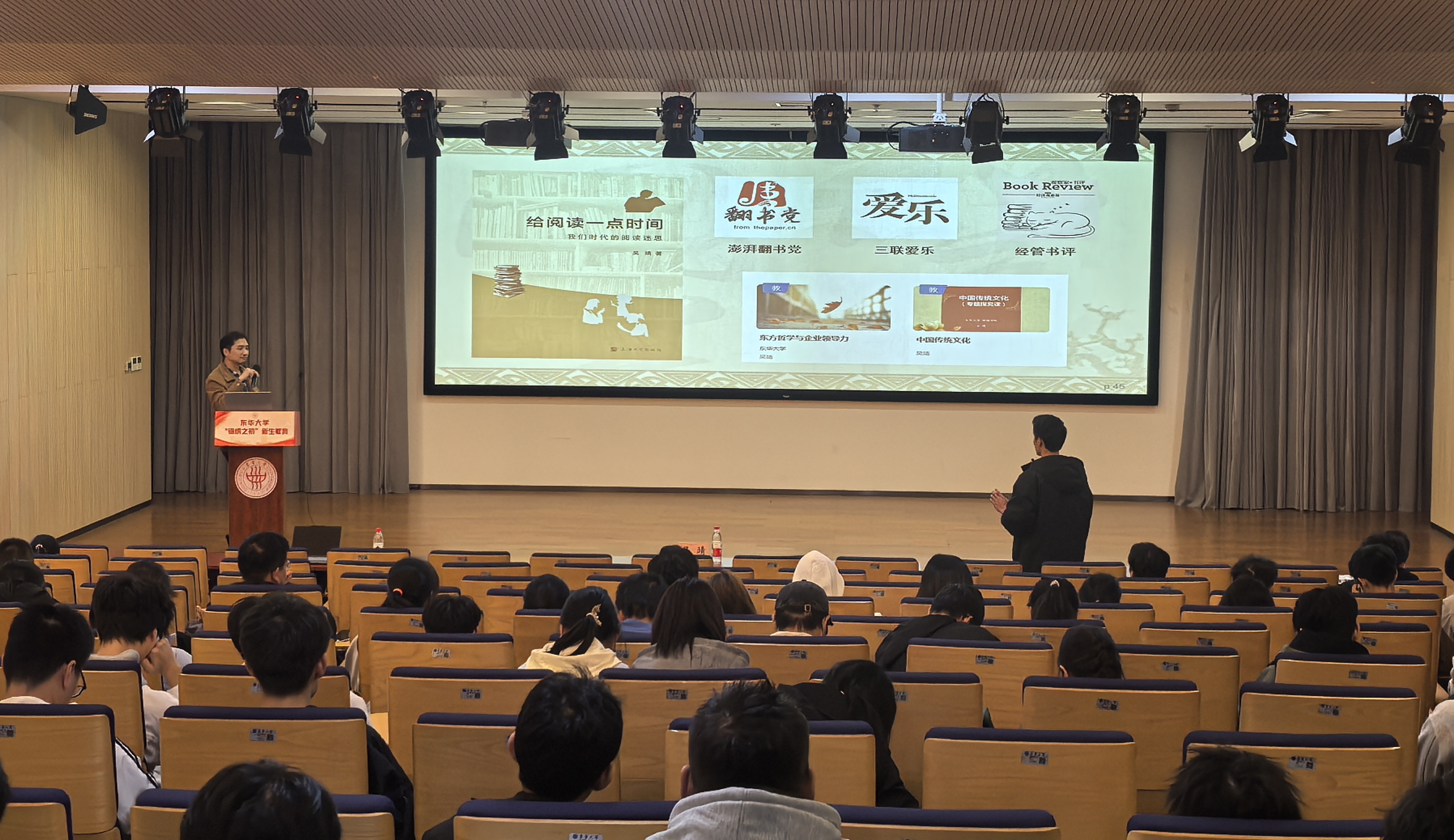 11月4日,学校“锦绣之初”新生教育讲座在松江校区举办。管理学院党政办公室主任、副研究员、专栏作家吴靖围绕“阅读与人生”为2025级新生作专题讲座,各学院180余名新生代表现场参加。